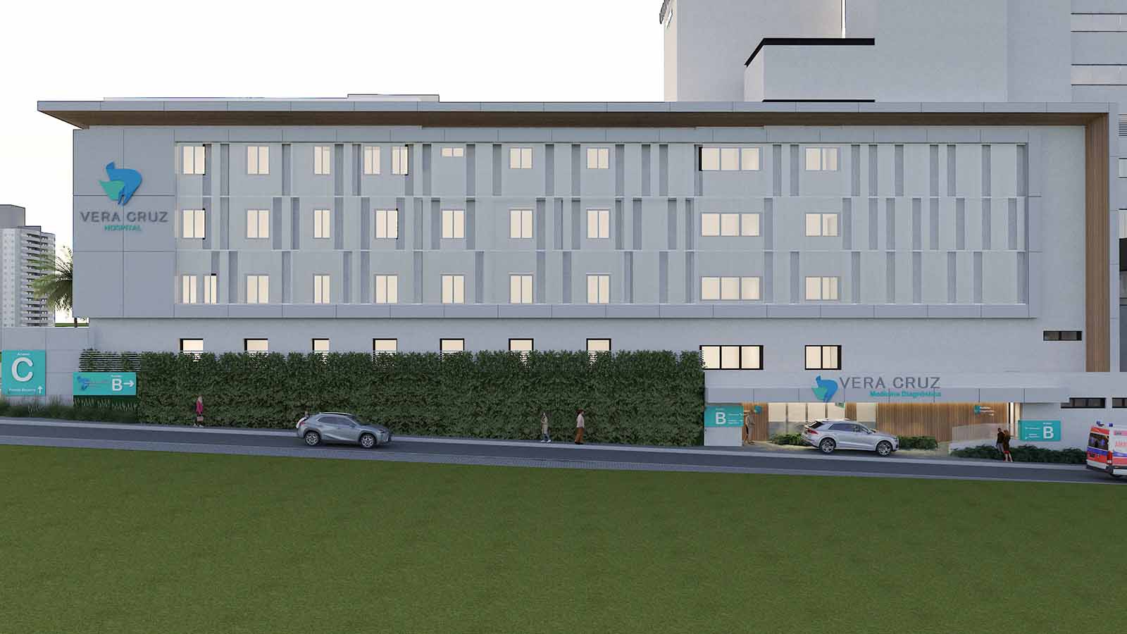 Ambientes: Fachadas; Recepções; Pediatria; Ressonância e Tomografia.